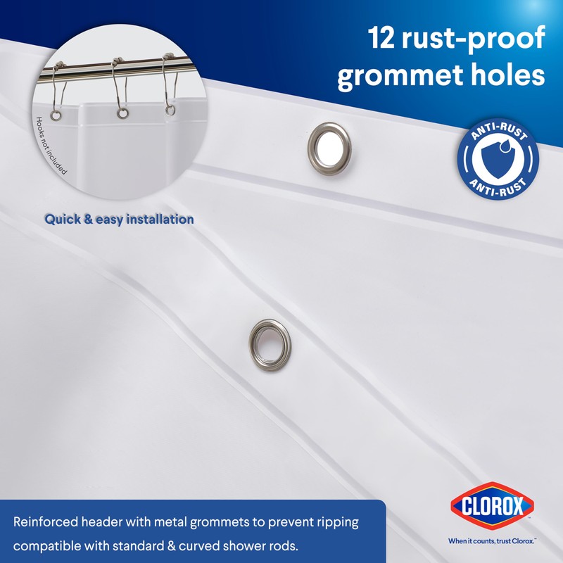 CLOROX Shower Curtain Liner, Premium Lightweight Durable Waterproof 4g PEVA for Bathroom with Weighted Magnets, Standard Size 70" x 72", Frosty 2 Pack