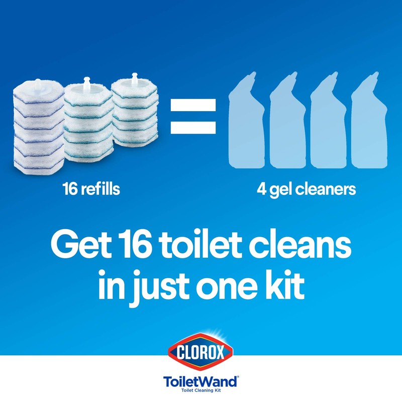 Clorox ToiletWand Disposable Toilet Cleaning System - ToiletWand, Storage Caddy and 16 Disinfecting ToiletWand Refill Heads (Package May Vary)