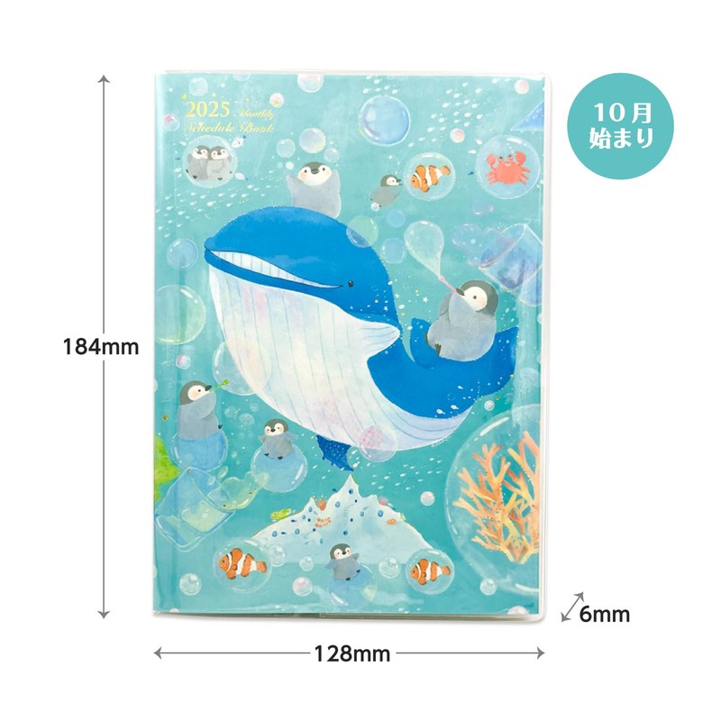 Close-pin Mano Yoshida Notebook, 2025 B6, Monthly Whale and Penguin Sea Blue Bubble SB96471 (Begins October 2024)