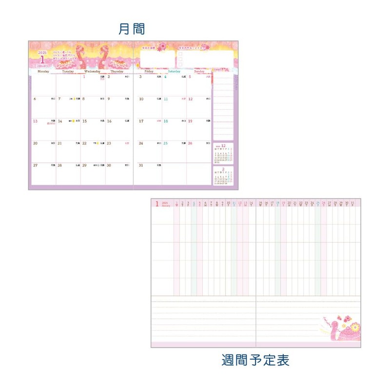 - Other: The saying is warm and soothing to match the monthly illustrations that overcome with the world of Mano Yoshida. Clear vinyl case with pen holder. Available from October 2024. Gold foil yearly calendar, yearly schedule, weekly planner, shop list ID & password list bookmark cord, pen holder included