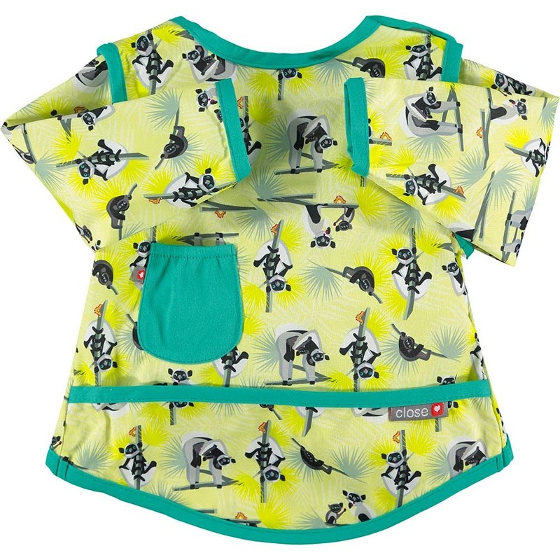Close Pop-in Baby Bib Waterproof Long Sleeve with Front Pocket from 18 to 36 Months | Machine Washable at 40 Degrees | Lemur Print