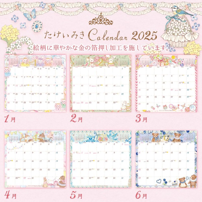 - Other: The popular popular illustrations of the popular Takemiki. This tabletop calendar can be placed in narrow spaces. Starting on Sunday, the phrase of Lupty, 13 spelling, ring and gold foil in the image. There is a note on the back of the entire month so you can write your appointments and more. The last page has a 2024 year calendar