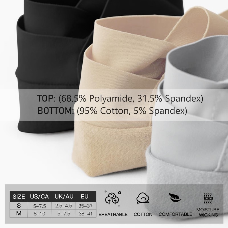 - Premium Material: The bottom cotton keeps your feet dry and cozy, the top nylon layer is smooth as silk. Suitable for Women Size S: 5-7.5, Size M: 8-10.