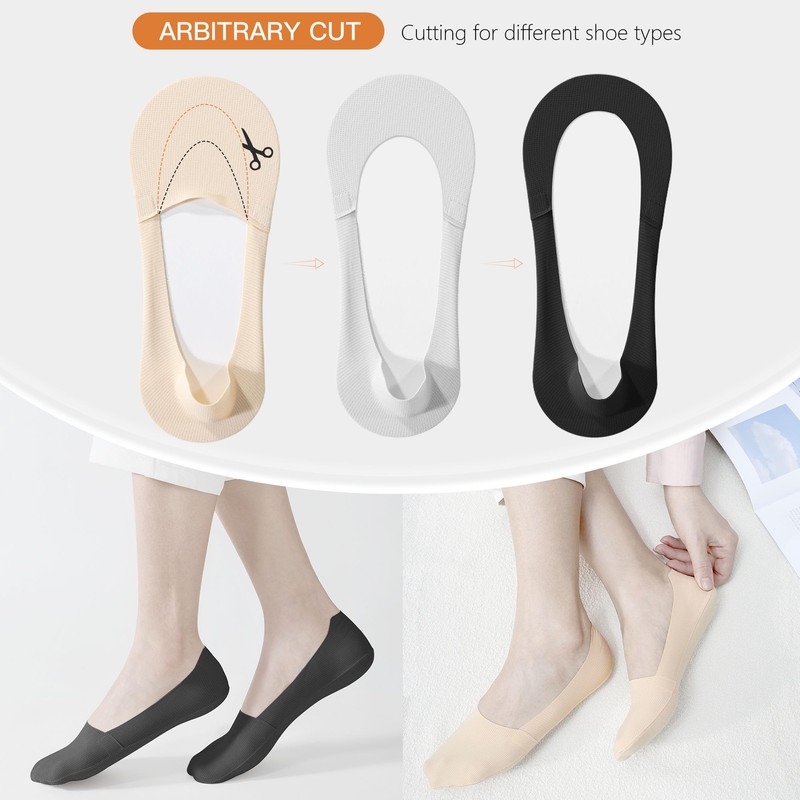 - Ultra Low Cut Invisible Socks: The arbitrary cut design makes it suitable for all kinds of women's shoes, such as flats, high heels and so on, you can cut for different shoes styles.