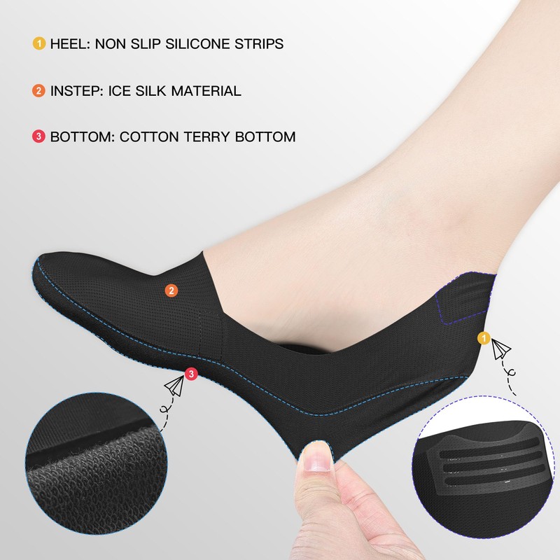 - Non-Slip Silicone Strips: These no show socks are with silicone rubbers on the heel, keep them firmly on your heel even stay in place all day or never fall off when walking.