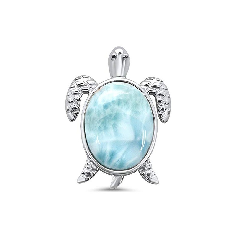 CloseoutWarehouse Oval Natural Larimar Decorated Turtle Charm Pendant Sterling Silver