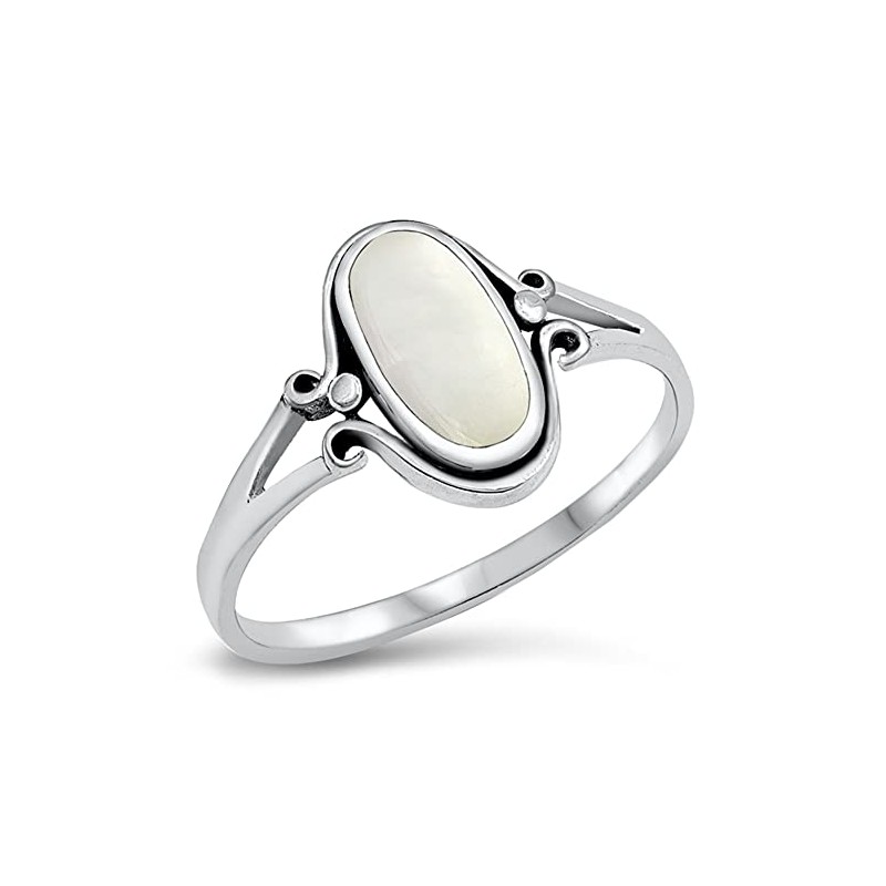 CloseoutWarehouse Simulated Opal Elongated Oval Ring Sterling Silver (Mother of Pearl, 7)