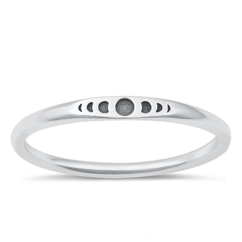 CloseoutWarehouse Sterling Silver Stackable Mini Signet Ring (Moon Phases, 7)