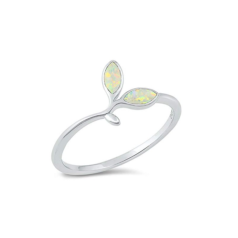 CloseoutWarehouse White Simulated Opal Small Leaf Ring Sterling Silver Size 6