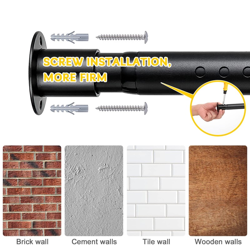 - Easy to Install: Fix the flange with screws, insert the hanging clothes rod into the flange, adjust the clothes rod to the right length, and then fix the rod with screws