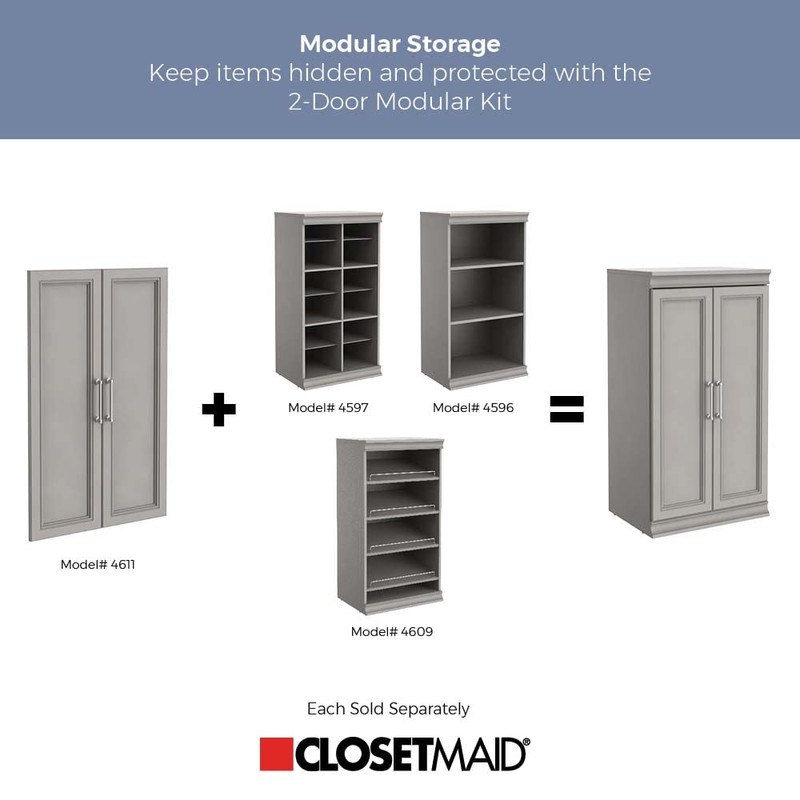 • CREATE A CLOSET ORGANIZATION SYSTEM: (2) Door Set designed to be installed to a compatible Modular Storage Collection by ClosetMaid stackable unit