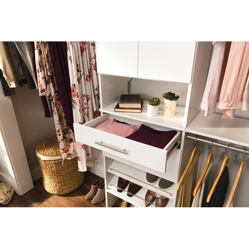 ClosetMaid SuiteSymphony Wood, Add On Accessory, Modern Style For Storage, Closet, Clothes, Size Units, Pure White/Satin Nickel, 25-Inch X 5-Inch Drawer