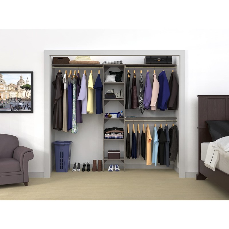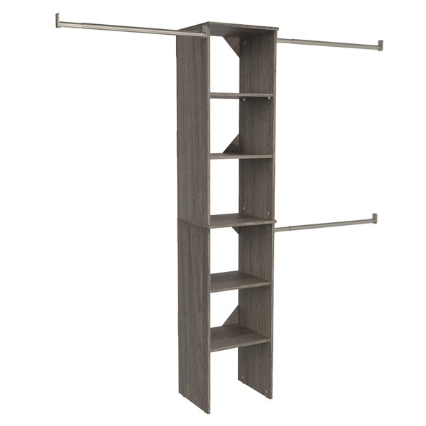 ClosetMaid SuiteSymphony Wood Closet Organizer Starter Kit with Tower and 3 Hang Rods, Shelves, Adjustable, Fits Spaces 4 – 9 ft. Wide, Graphite Grey