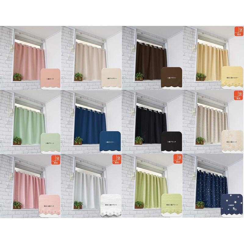 Cloth Shop Cafe Curtains, Level 1, Level 2, Blackout Curtains, for Small Windows, Insulated, UV Protection, Width: 39.4 inches (100 cm) x Lengths: 17.7, 27.6, 35.4 inches (45, 70, 90 cm), Width 55.1 inches (140 cm) x Length 17.7, 27.6 inches (45,70 cm)