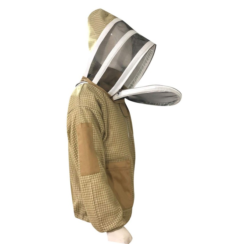 Clothes and Leather 3 Layer Beekeeping Ventilated Jacket Fully Protection Beekeepers Ultra Ventilated Bee Jacket with Fencing Veil Facezipper (2X-Large, Khaki)