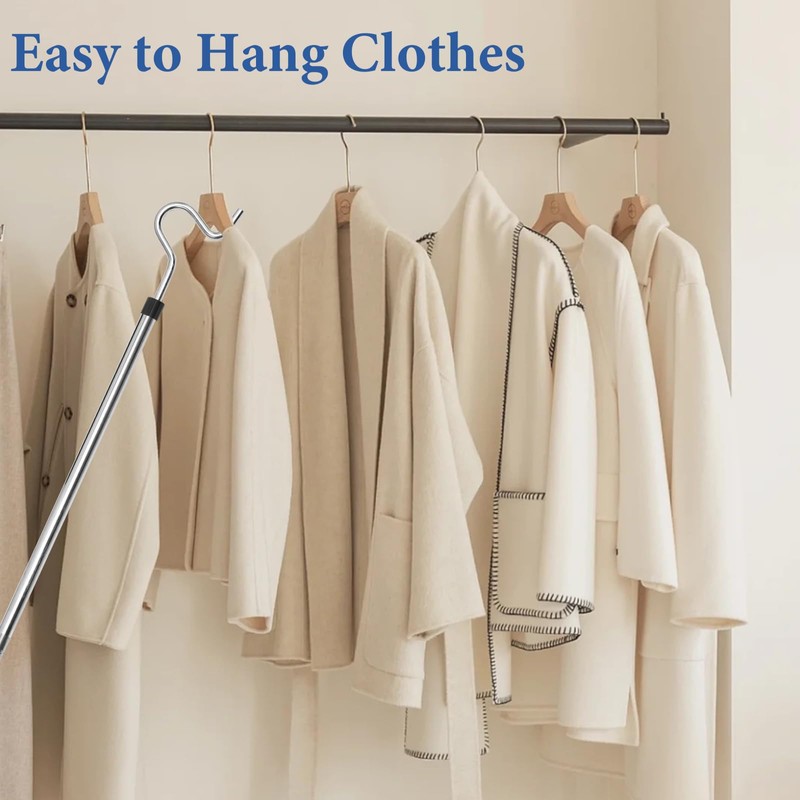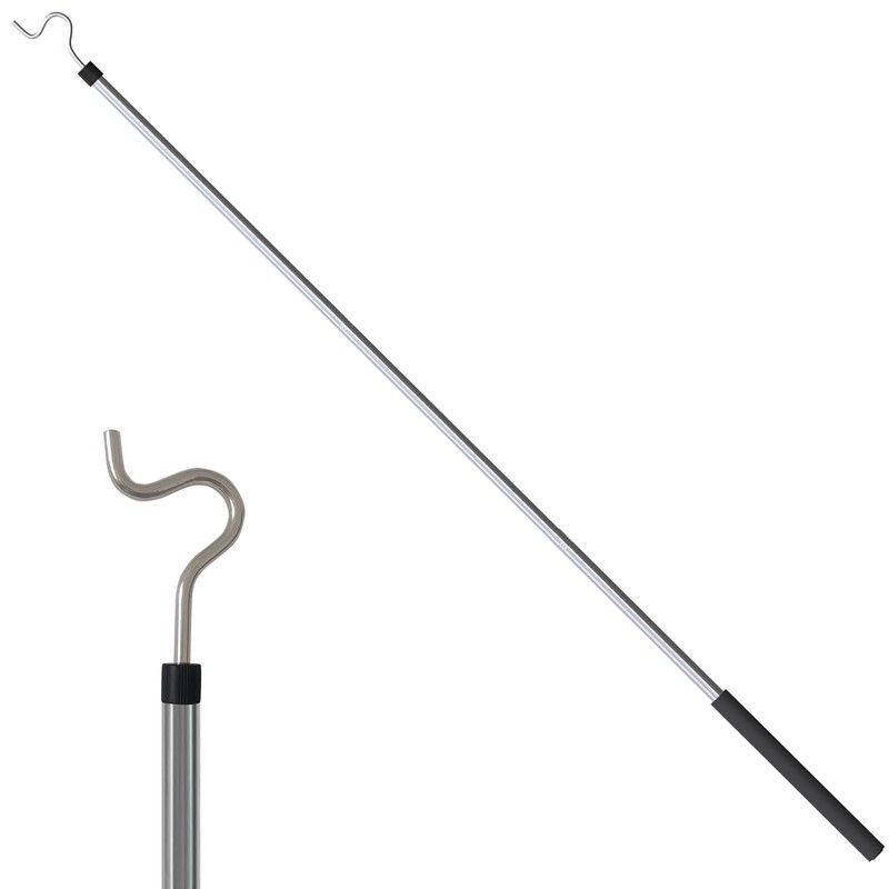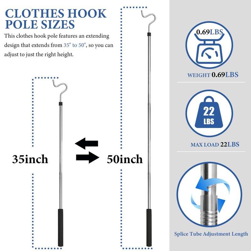 Greeily Clothes Hook Pole, Clothes Hanger Reaching Hook for Hanging Clothes Light and Plants Extendable from 35" to 50" Made of Stainless Steel Tube with Sponge Handle (50inch)