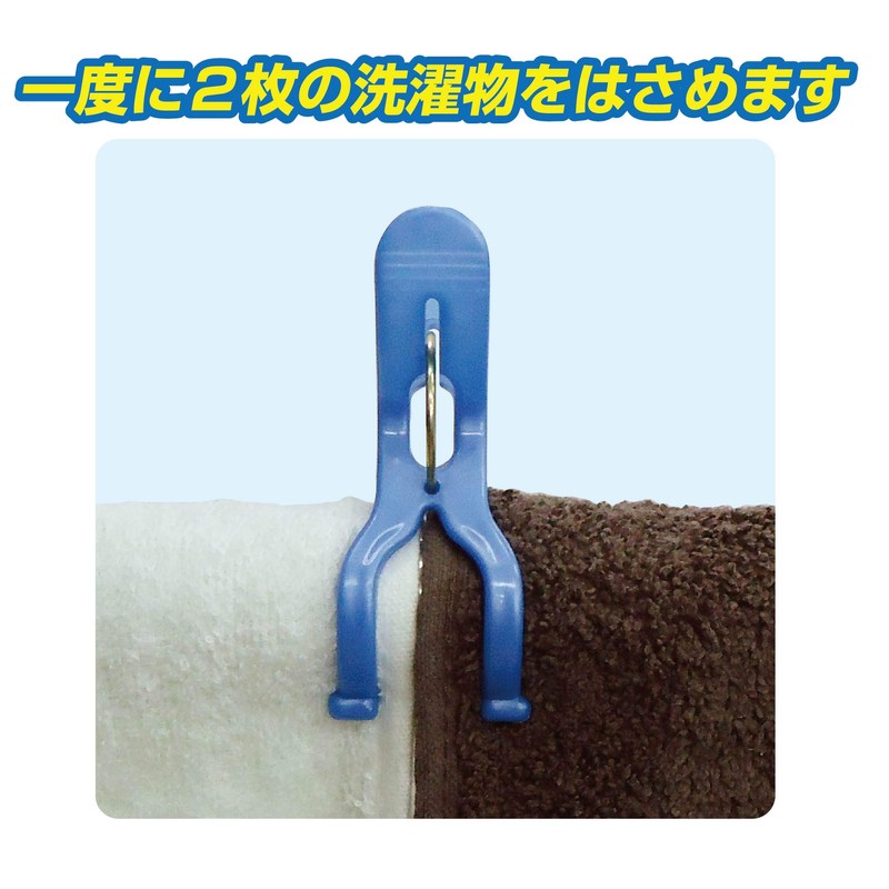 - 特徴:厚手の洗濯物も竿の上からしっかりはさめなす。ハンガーの固定もできます