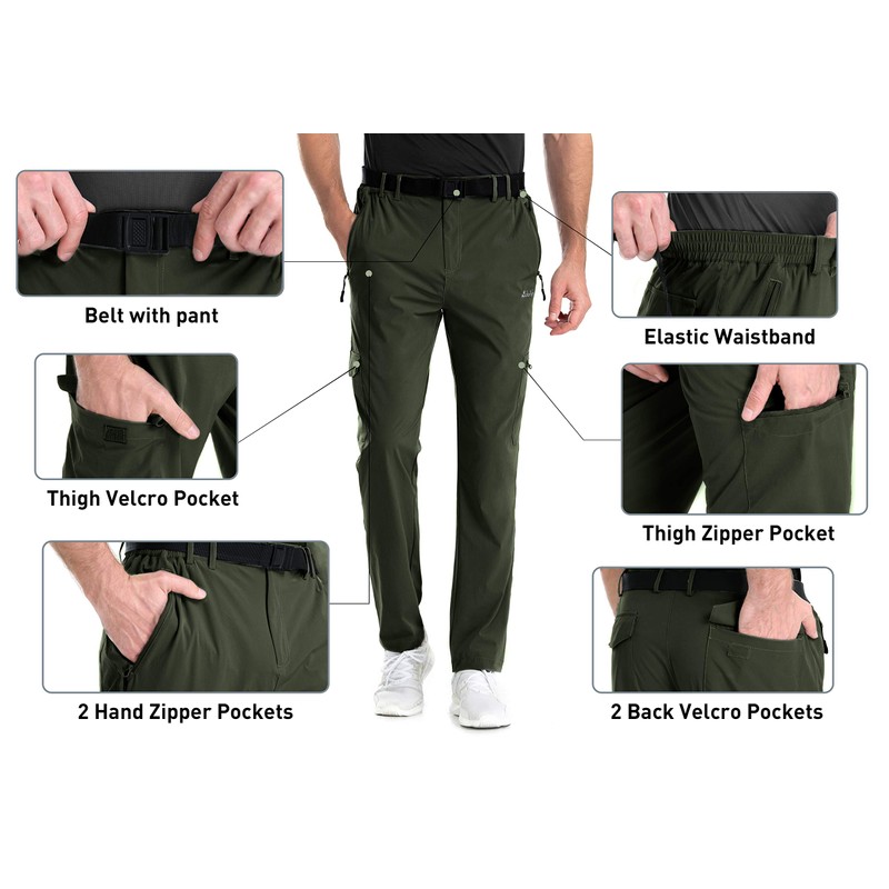 clothin Men's Elastic-Waist Travel Pant Stretchy Lightweight Pant Multi-Pockets Quick Dry Breathable(Moss M-30)