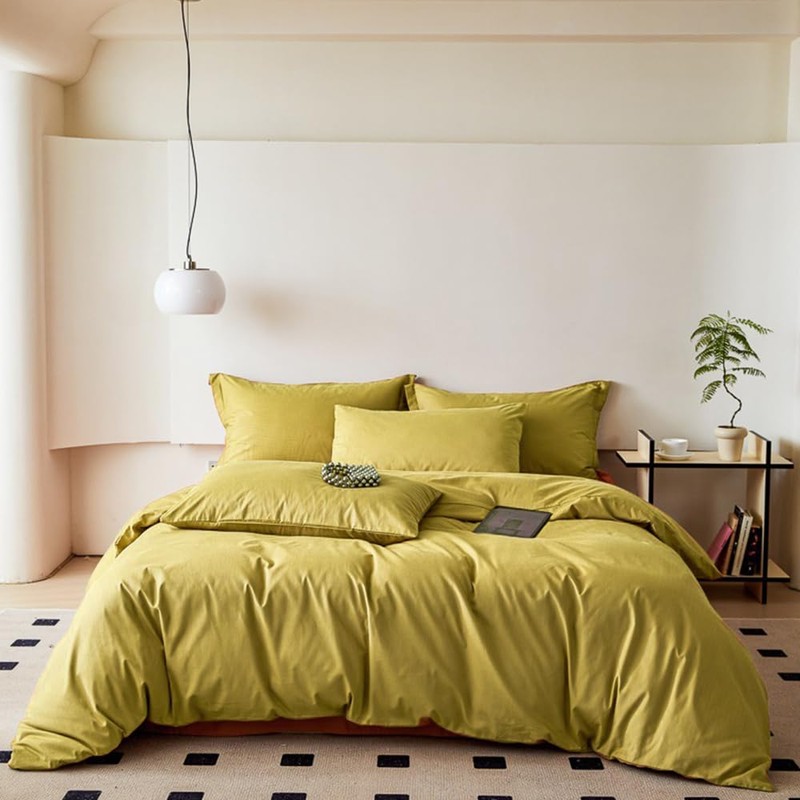 - 【Solid Moss Green Color Design】: New moss yellow comforter design to return to simplicity, not only make you feel more relax and comfortable life, but also well match any kinds of decoration styles. Simple modern contemporary design, give you visual enjoyment. The full comforter sets is suitable for bedroom, guest room, school dormitory, hotel and so on.