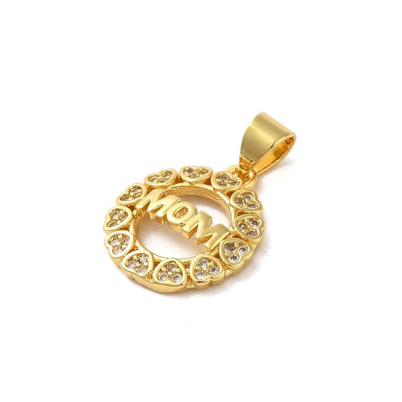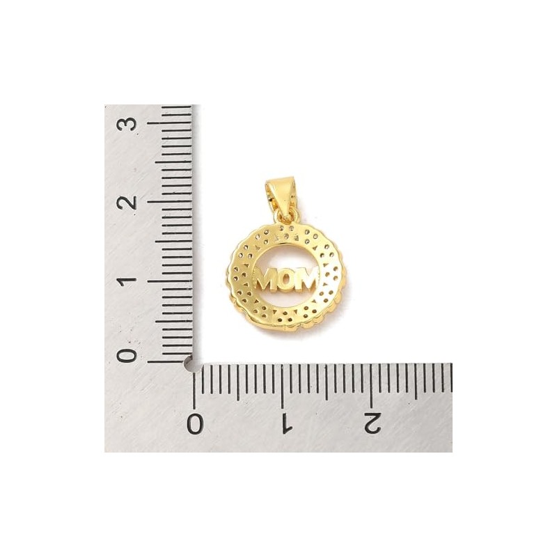 Clotiry 10Pcs Brass Round with Word MOM Micro Pave Cubic Zirconia Pendants for Mother's Day Jewellery Making DIY Crafts