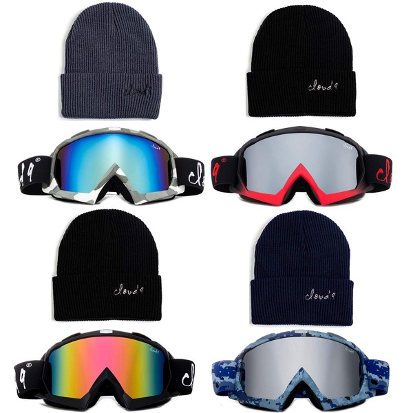 Cloud 9 Professional Snow Ski Goggles Adult Anti-Fog Dual Lens UV400 Protection (Combo- Camo Goggle & Gray Beanie, Green Revo)