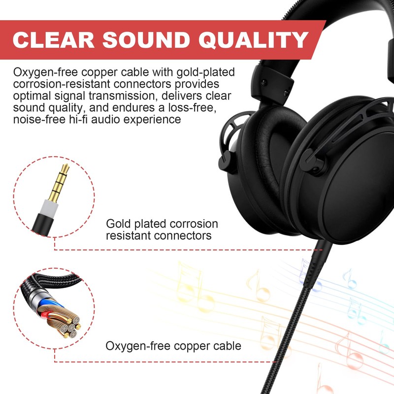 2m/6.6ft long black audio cable for cloud alpha headset. 30 days hassle-free replacement or refund. If you have any questions about the product, please feel free to contact us.