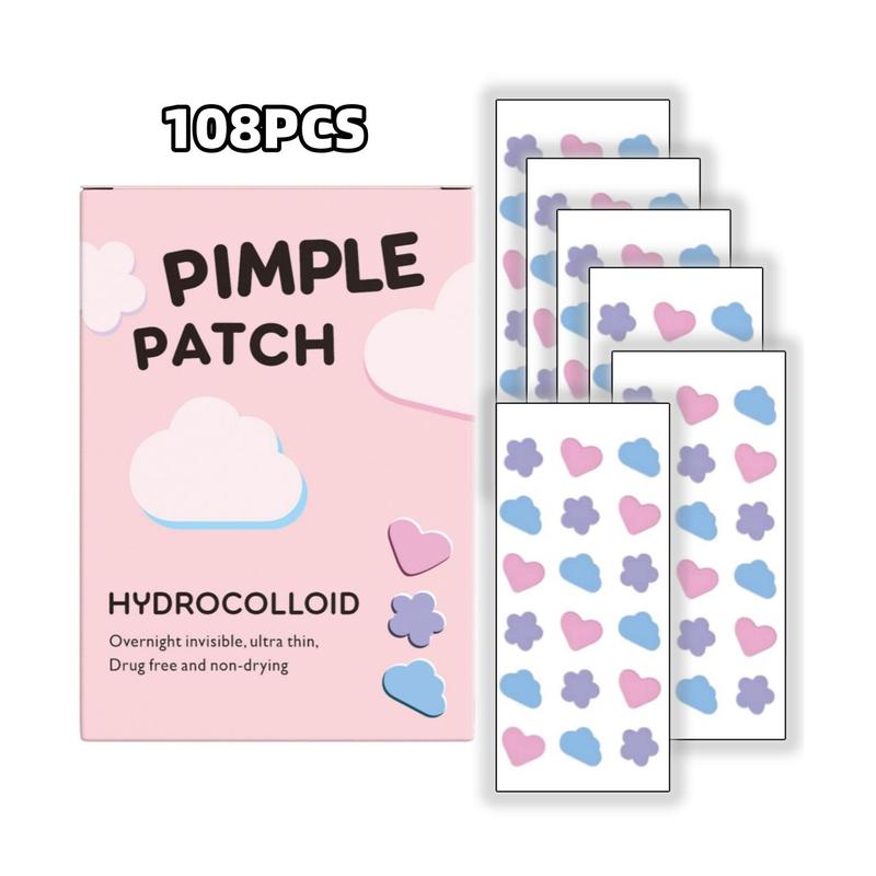 Cloud & Heart Pattern Pimple Patch, 108pcs/box Hydrocolloid Invisible Acne Cover Patches, Skin Care Products for Women & Men