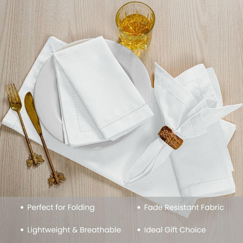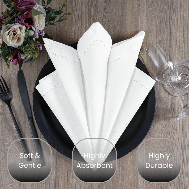 - DURABLE AND LONG-LASTING: Designed for longevity, these table napkins feature tightly woven cotton fibers that withstand repeated washing and daily use. The reinforced hemstitch border prevents fraying, ensuring they remain in excellent condition over time.