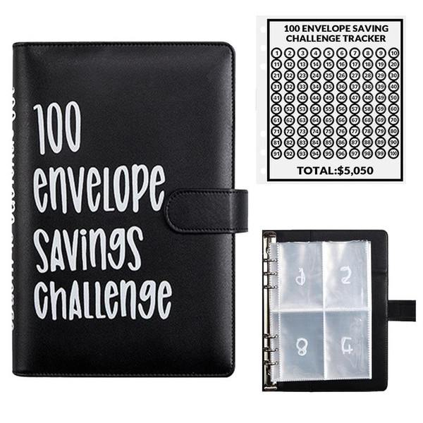 CLOUDSEA 100 Envelope Challenge Binder, Money Saving Challenge Book - Easy & Fun Way to Save $5,050, ,Budget Binder with Cash Envelopes,Piggy bank - Color: black