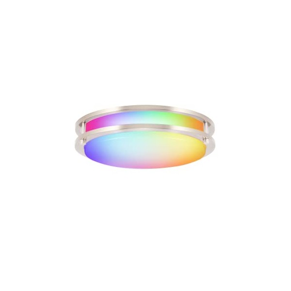CLOUDY BAY 12 Inch LED Smart Flush Mount Ceiling Light,20W 2700K-6500K, 4W RGB Color Compatible with Alexa and Google Home Assistant, Nickel Satin