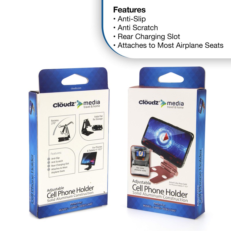 - * Like all of our Cloudz branded Travel Pillows, Blankets and wide range of Travel Accessories, our Cloudz Adjustable Cell Phone & Tablet Holder has been designed with every thought of your unique comfort and expectation of quality.