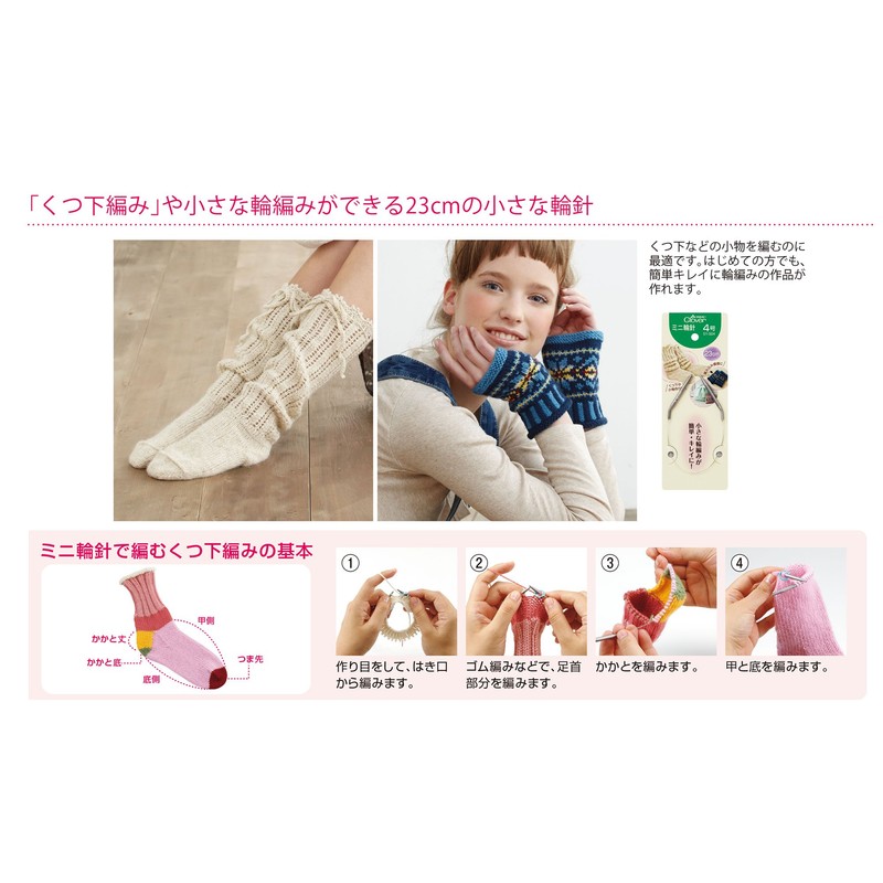 Clover 51-504 Mini Circular Needles, 9.1 inches (23 cm), No. 4