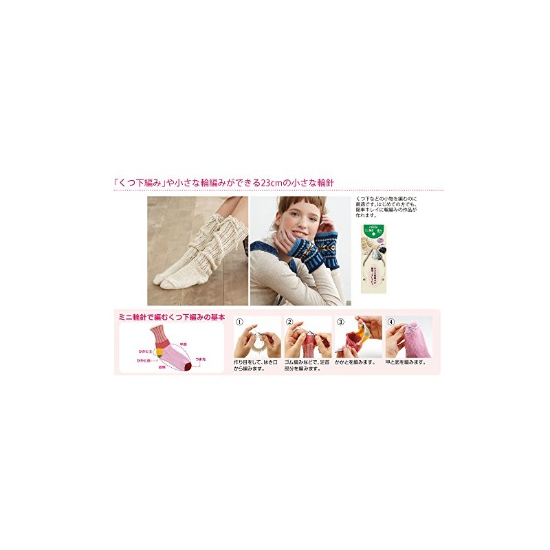 - 9.1 inch (23 cm) small ring needles that can be used for "shoke" or small circular knitting