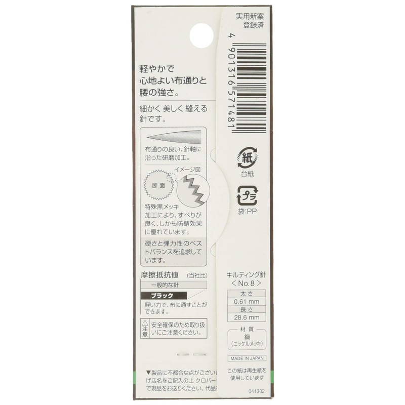 Clover 57-148 Quilting Needles, Black No. 8