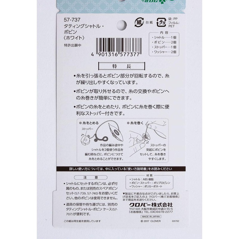Clover 57-737 Tatting Lacing Equipment Tatting Shuttle Bobbin, White