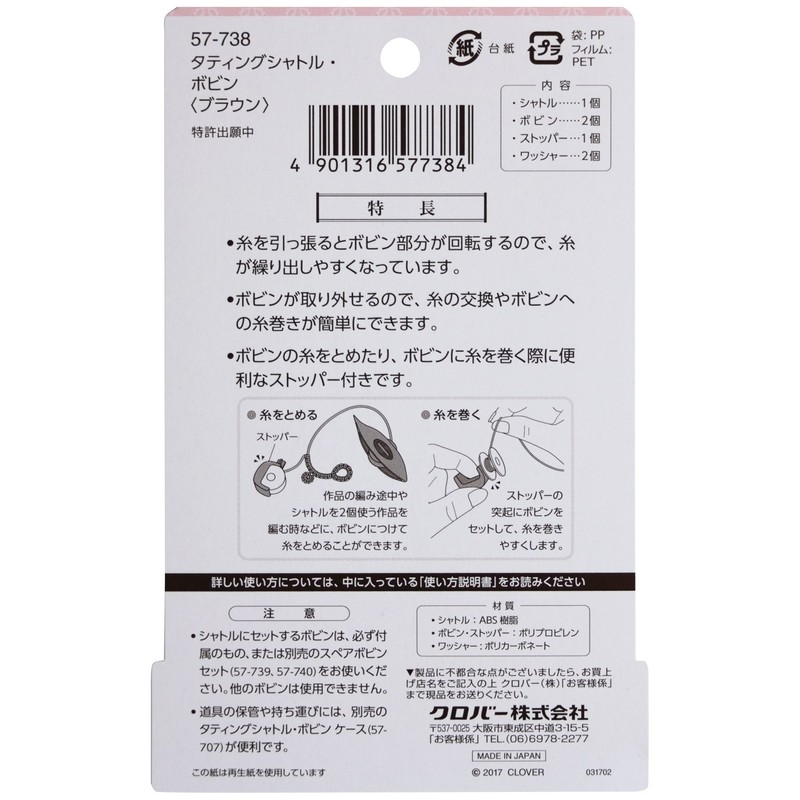Clover 57-738 Tatting Lace Tool, Tatting Shuttle Bobbin, Brown
