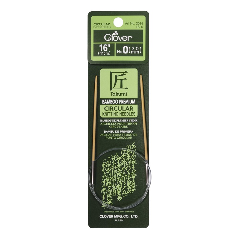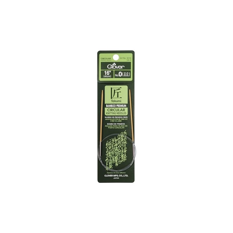Clover Bamboo Circular Knitting Needles Takumi, 16-Inch Size 0