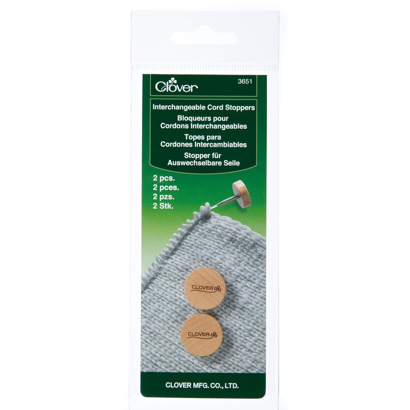 This 3651 clover interchangeable cord stopper set of 2 pieces allows you to attach a stopper into an interchangeable cord to prevent dropped stitches.