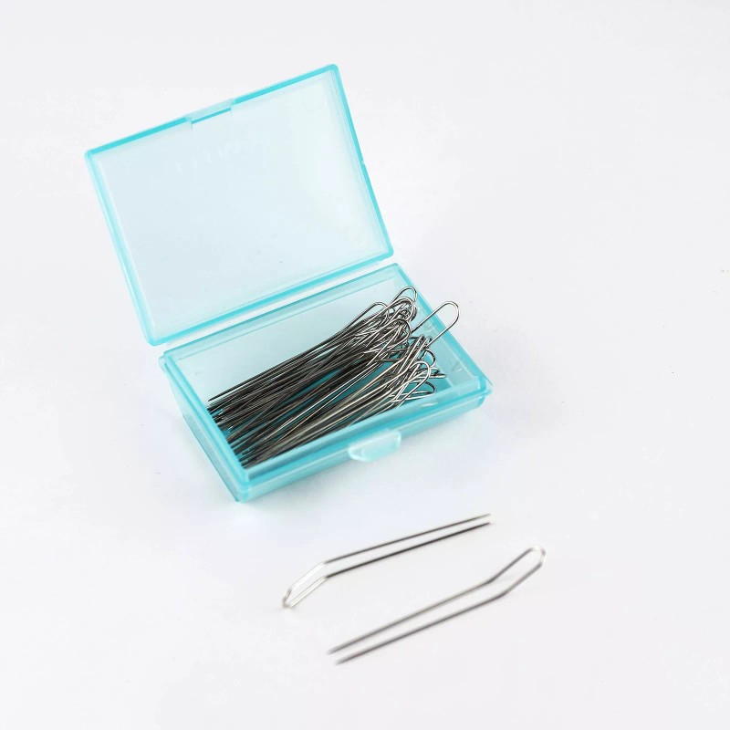 The double pins can quickly pierce and firmly hold a slippery lining material temporarily in place. The grip of the double pin is bent for Ease in handling. 0.56 by 40mm.