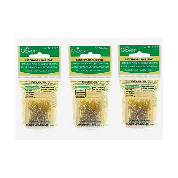 • Clover Extra Fine Patchwork Pins - 3 Boxes - 100 Pins in Each Box - Total 300 Pins
