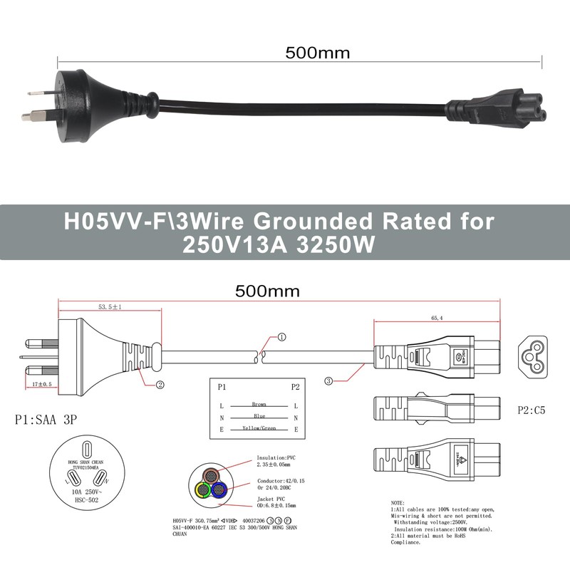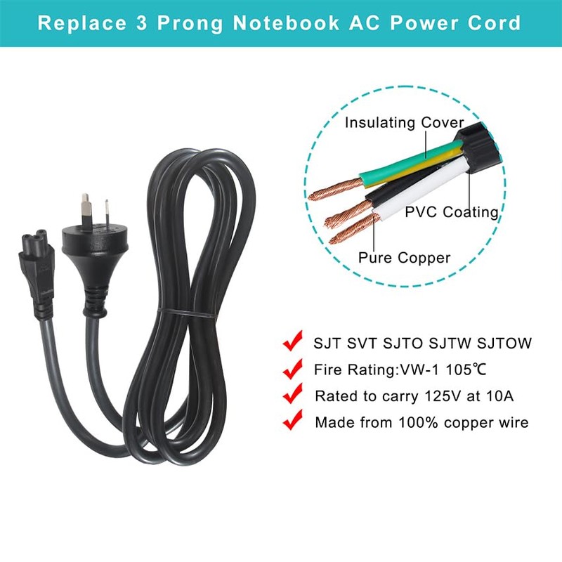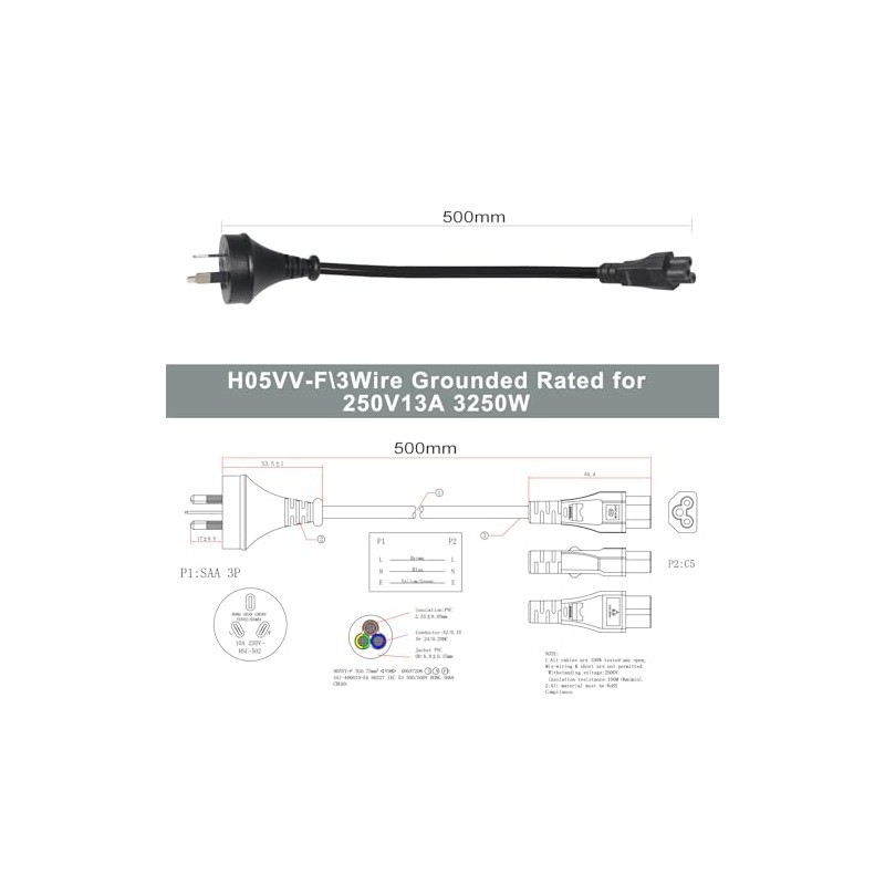 - Package include:1 pieces C5 power cord extension Austrilian 3 Prong Plug AC Cable