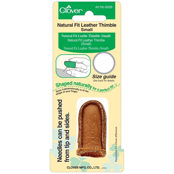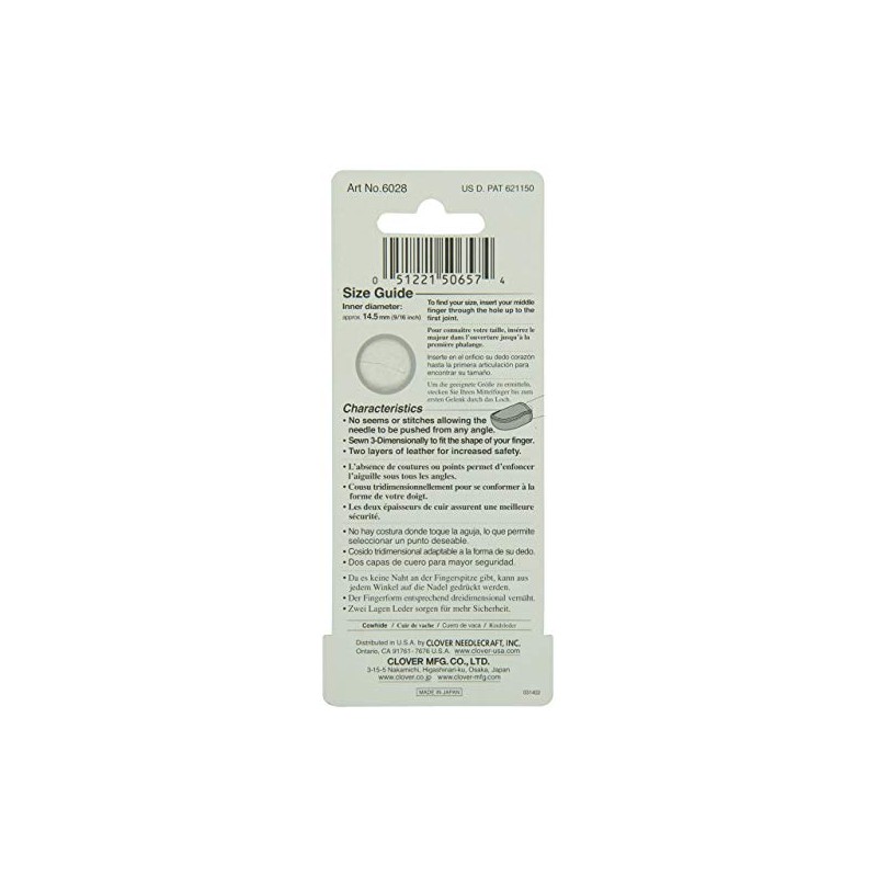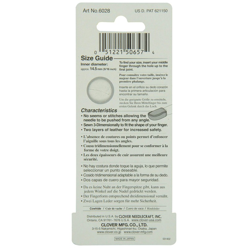 A new shape created to give you a perfect fit. A finger-shaped leather thimble from 3-dimensional stitching technology. No seams or stitches where the needle hits the thimble allowing the needle to be pushed from the most convenient spot. The unique shape creates a smooth curve from the edge of the fingertip to the middle of the finger for a cozy natural fit. Available in three sizes: each sold separately. Imported.