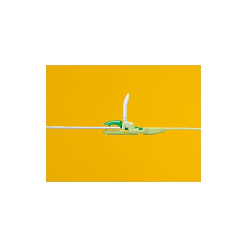 - Clip provides firm hold on elastic end for pulling through casing with ease