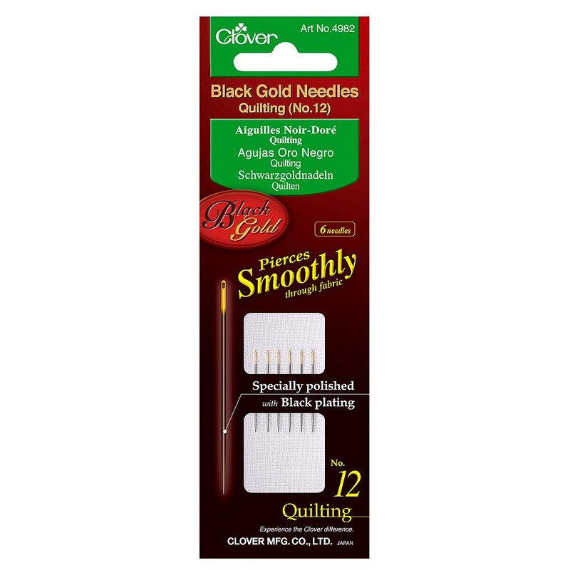 Clover Quilting Needle No 12, Black and Gold