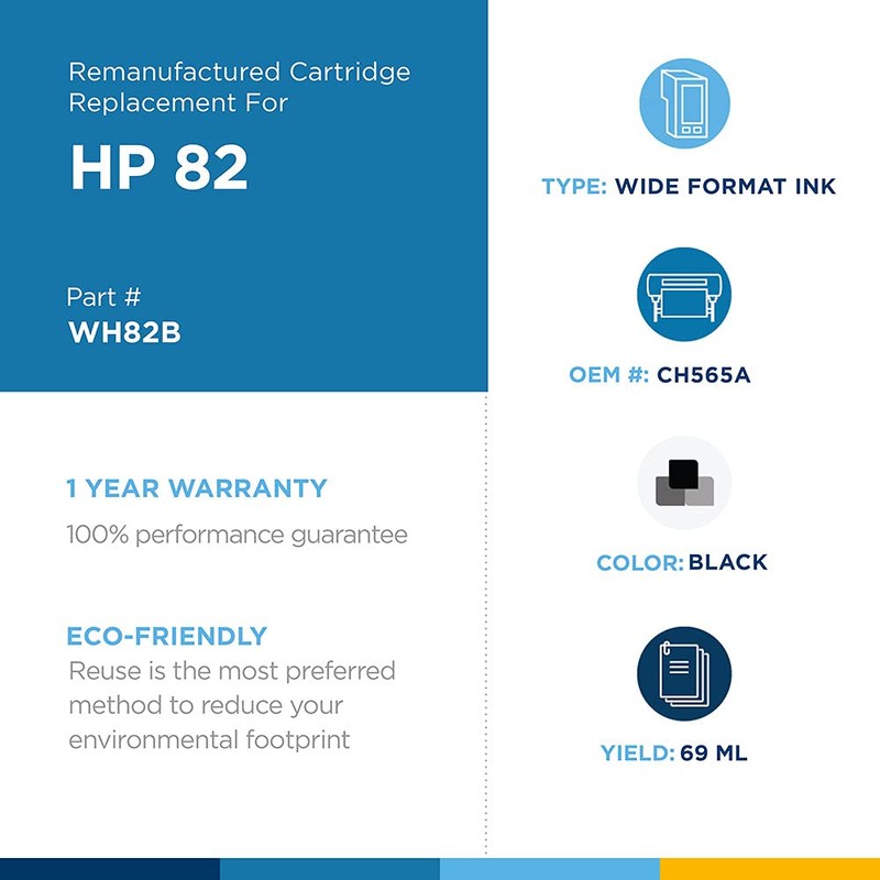 Clover Remanufactured Ink Cartridge Replacement for HP CH565A 82 | Black
