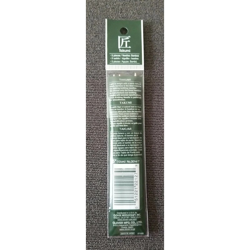 Clover TAKUMI 5" #7 Bamboo Knitting Needles 5pk NEW