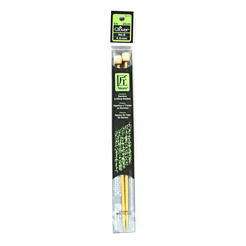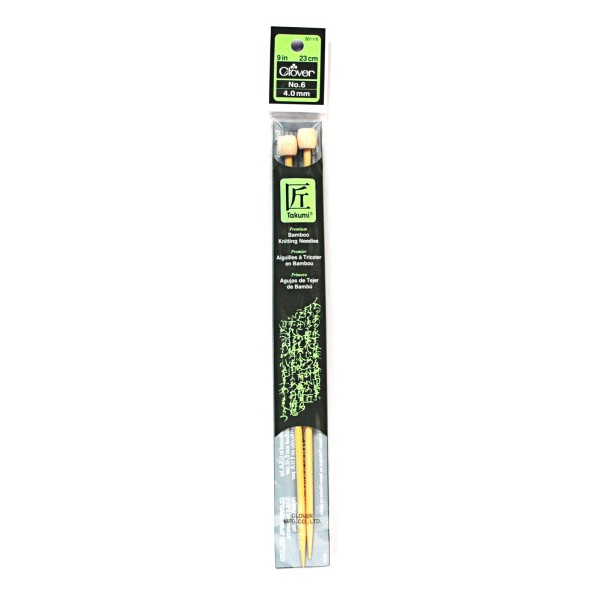 Clover Takumi Bamboo 9 Inch Single Point Knitting Needle Size 6