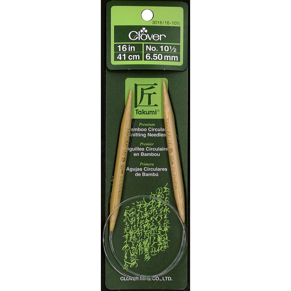 Clover Takumi Bamboo Circular 16-Inch Knitting Needles, Size 10.5