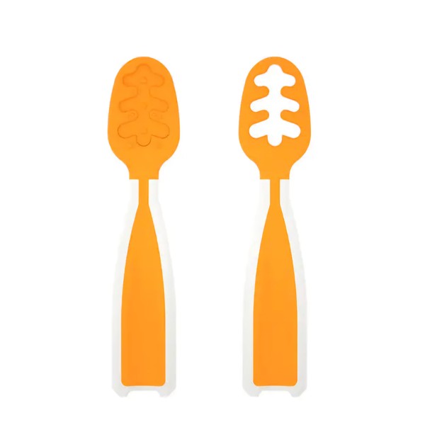 CLOVERSS® Baby Löffel, Kleinkindutensilien, Baby Einsteiger-Löffel, blw Vorlöffel, 2er Set Löffel Schritt 1 und Schritt 2 (Orange)