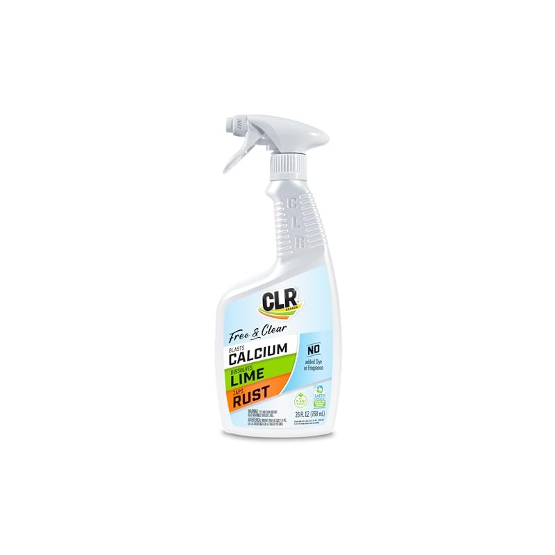 CLR Brands® Calcium, Lime & Rust Remover Free & Clear, No Dyes or Fragrances, Gentle Lime and Bathroom Descaler, Removes Hard Water Stains and Rust Deposits, 26 Oz Bottle (Pack of 1)